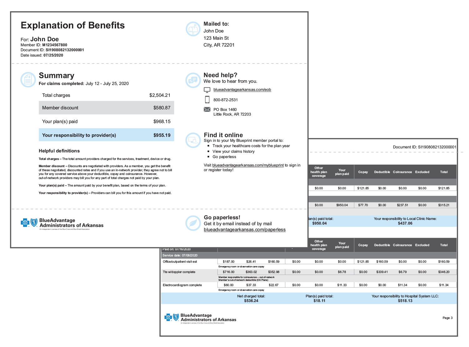 - Your plan(s) paid: The amount BlueAdvantage paid based on the benefit coverage and the contractual agreement with the providers